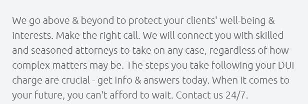 In the high-stakes world of DUI charges, finding a DUI attorney is not just a choice, it's a lifeline; with unparalleled expertise and an unwavering commitment to justice, our team of top-tier DUI lawyers stands ready to fiercely defend your rights and secure your future, transforming uncertainty into clarity with every strategic move, because when your freedom is on the line, you deserve nothing less than the best.